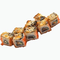 Состав: тигровая креветка, угорь, авокадо, крем-сыр, терияки, панировочные сухари, кляр