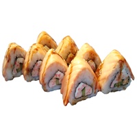 Состав: креветки, сыр креметте, огурец, тобико, кляр, панировочные сухари, терияки, кунжут