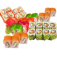 Состав: ФИЛАДЕЛЬФИЯ, КАЛИФОРНИЯ, ГАВАЙСКИЙ, СЕНСЕЙ, (васаби 10 гр, имбирь 30 гр, соевый соус 60 гр, 2 палочки) (32 кусочка)