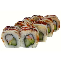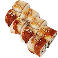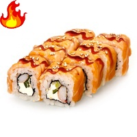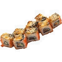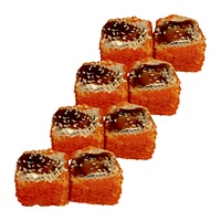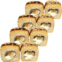 Состав: тигровая креветка, угорь, авокадо, крем-сыр, терияки, панировочные сухари, кляр