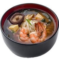 Состав: рыбный бульон, лосось, тигровая креветка, морковь, болг. перец, лапша яичная, шиитаке, вакаме, лук-порей, кунжут
