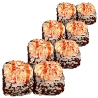 Состав: тигровые креветки, сыр креметте, огурец, кунжут, имитация снежного краба, спайси-соус